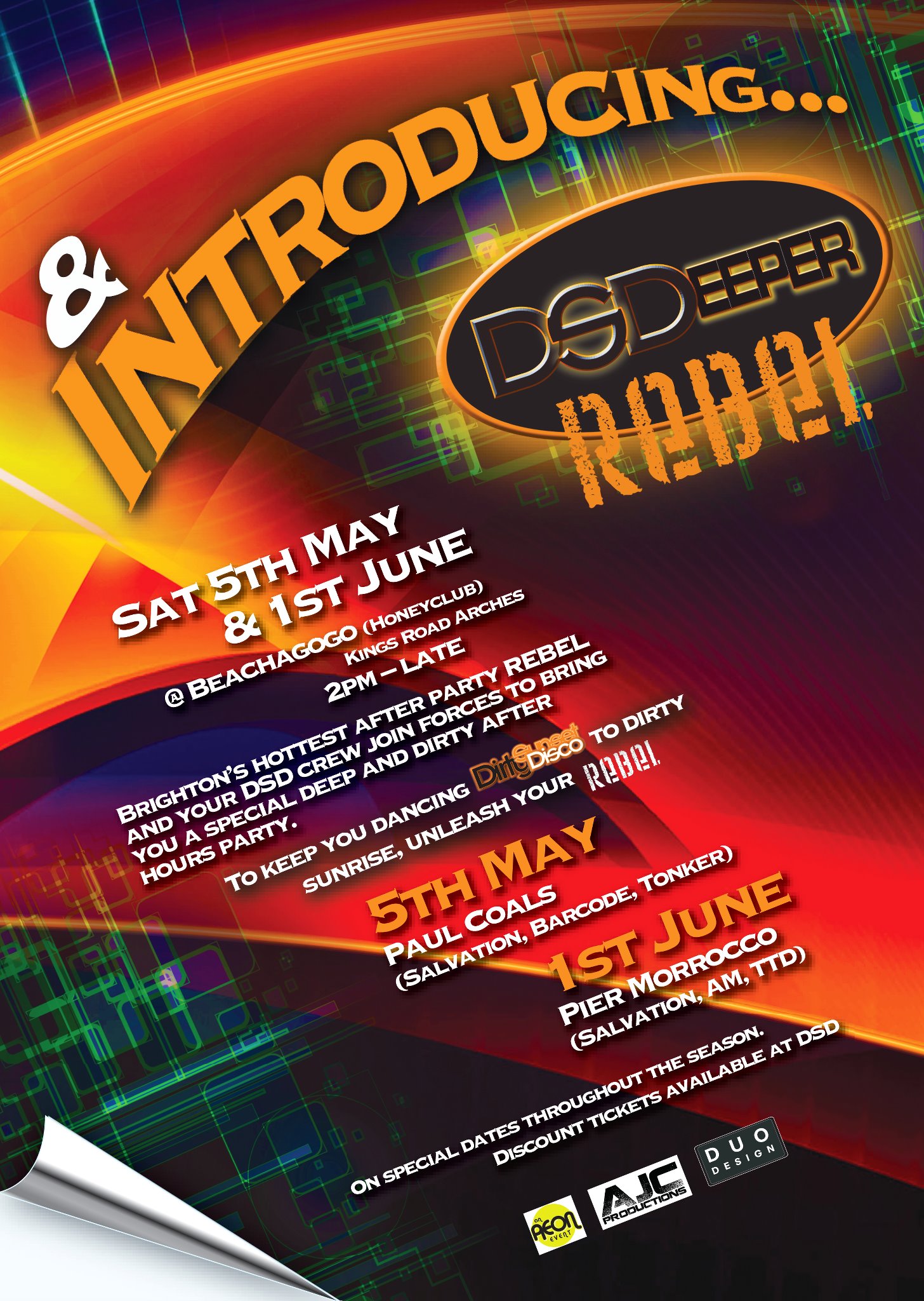 When the neighbours complain you just know the tunes are good. And so its been this week as Queenie and I tune up for a weekend of must-do parties. Friday the 4th of May will see the start of something truly special as DSD and Rebel join disco forces for DSDeeper Rebel. Yep the basslines ain’t gonna stop come closing time at OhSo as these two party wonders combine DJs, production and passion for an afterhours you just have to be at. Come join the rebellious ones from 2am at Brighton’s Beachagogo (formerly The Honeybar) with DJ Mikalis and myself warming up for special guest DJ Paul ‘Cor!’ Coals as we get deep, dirty and down right naughty till dawn.