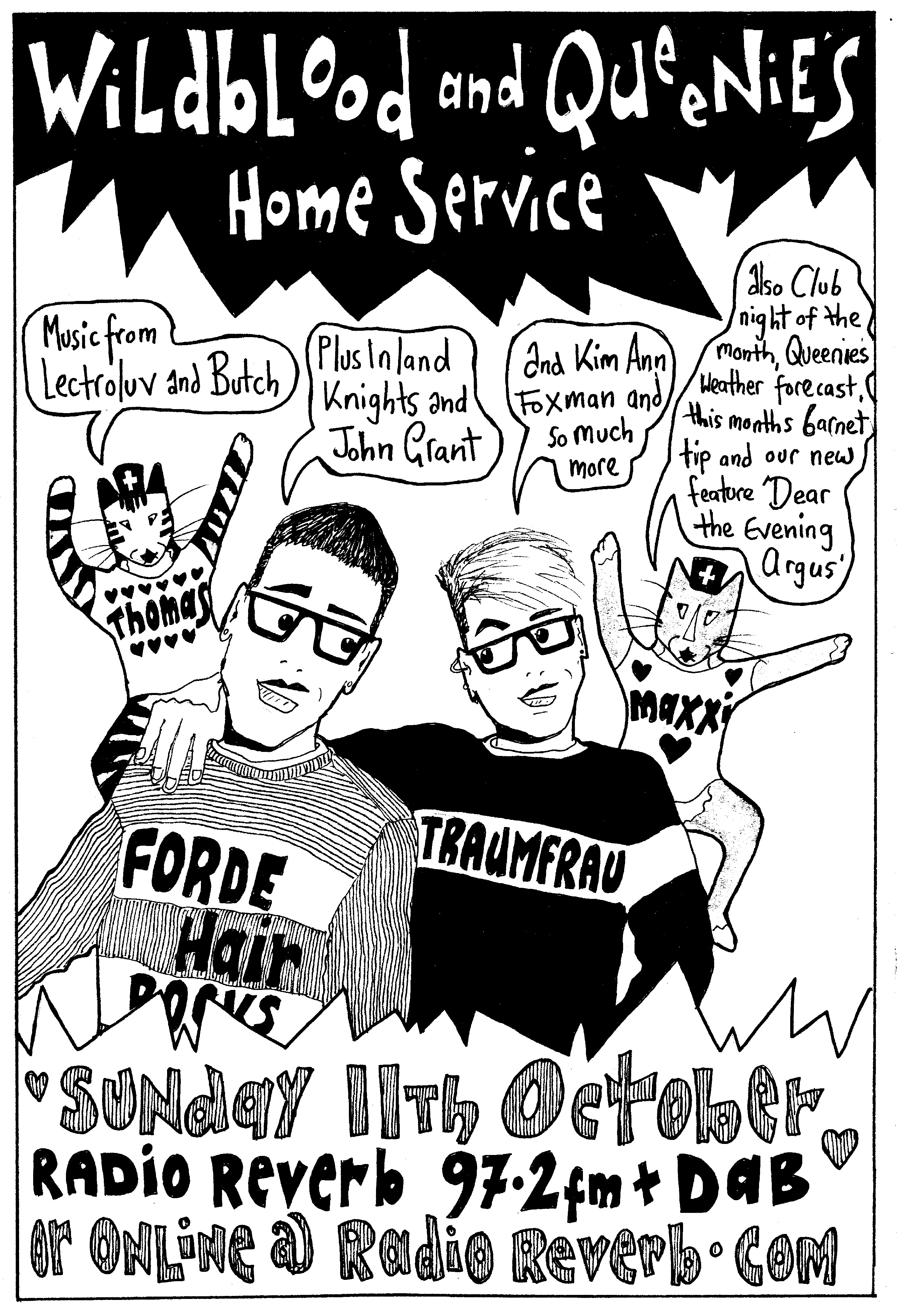 Wildblood + Queenie’s Home Service, broadcast on the 2nd Sunday of the month at 5pm, repeated the following Wednesday at 7am, Thursday 11am, Friday 6am.Catch up anytime with Home Service on Mixcloud at wildbloodandqueenie