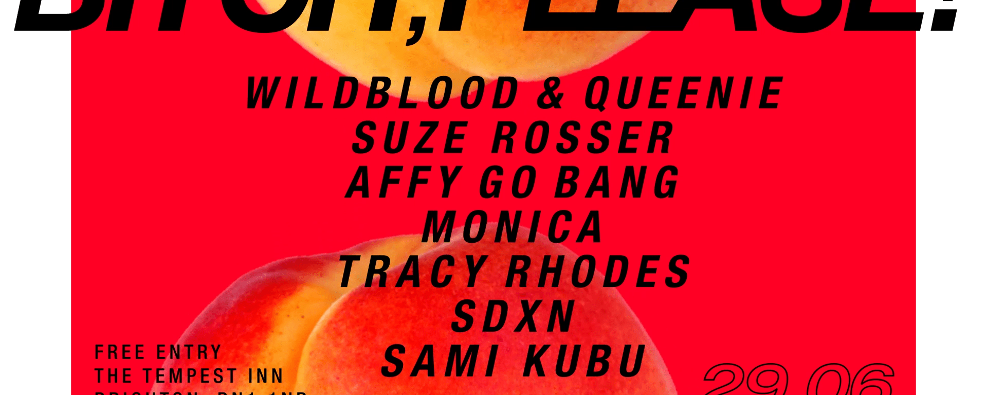 Bitch, Please! Saturday 29th June 19:30-04:00. The Tempest Inn, Kings Road Arches, Brighton BN1 1ND Free entry all night. DJs Suze Rosser, Wildblood & Queenie, Affy Go Bang, Sami Kubu, SDXN, Tracey Rhodes and Monica Music. For more info and to say you’ll be there find Bitch, Please! on Facebook