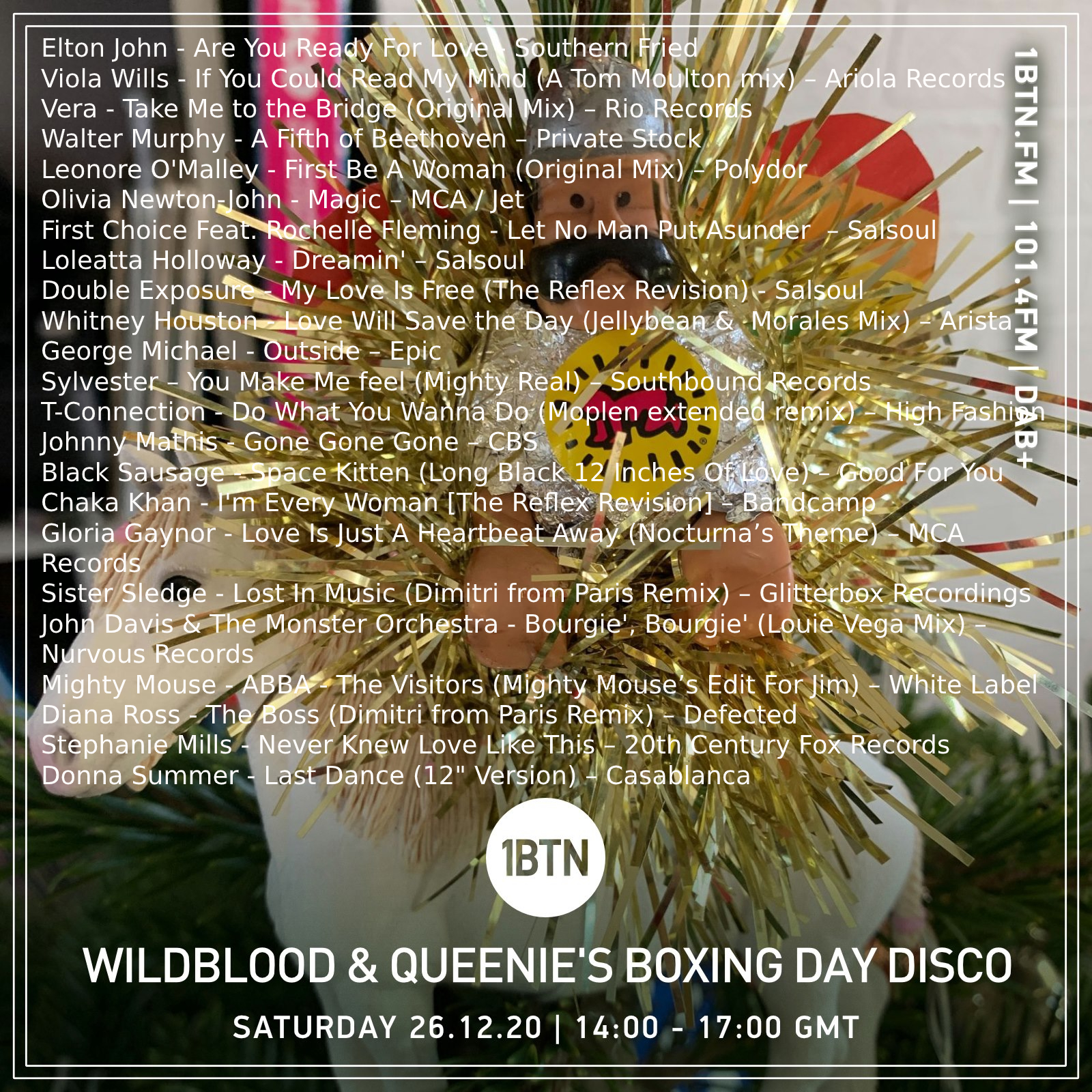 Wildblood and Queenie Show on 1BTN. If you like a lot of disco on your biscuit, join our club. Every 1st & 3rd Friday 13:00-16:00. 101.4FM | DAB+ | TuneIn | 1btn.fm