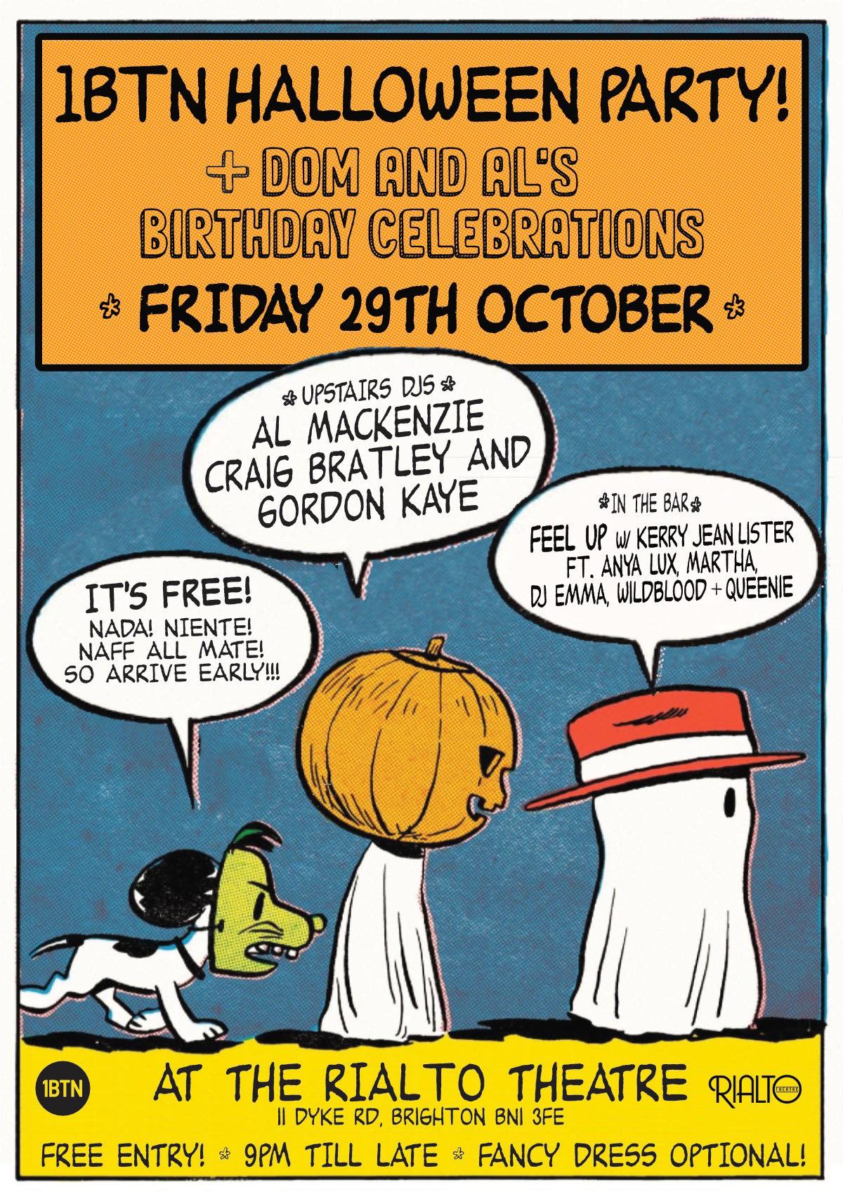 1BTN Halloween Party Friday 29th October Rialto Theatre, Dyke Road, Brighton 9pm-4am.