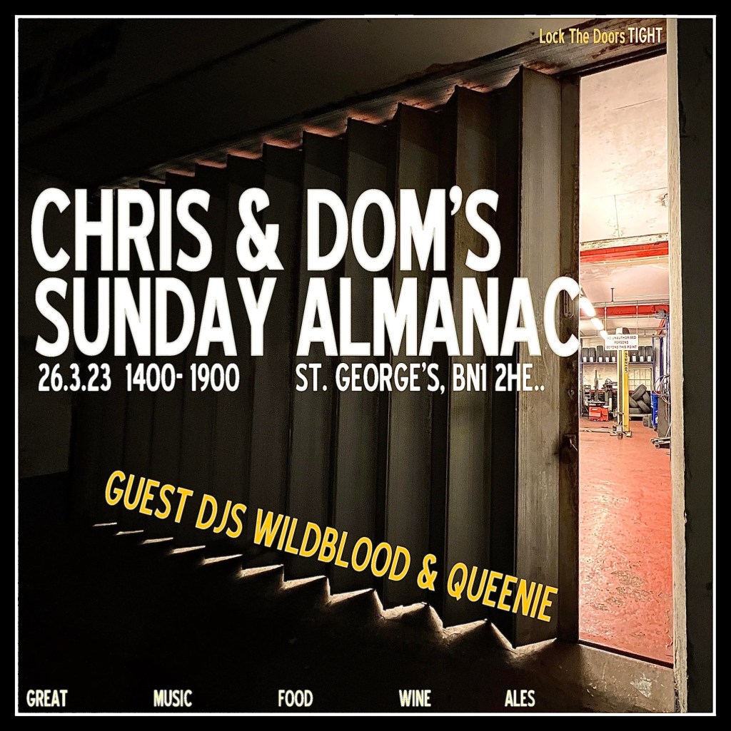 Chris & Dom’s Sunday Alamanac w/ Wildblood and Queenie March 26th 14:00-19:00 St Georges Inn, Sudeley Street, Brighton BN2 1HE. See you at the front. Join the fam at Chris & Dom’s Record Box on Facebook