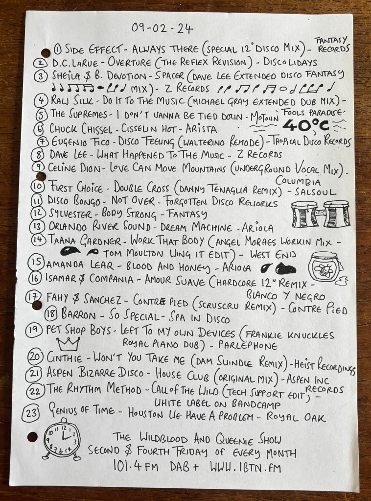 One of those shows we do on that thing called the radio is finally out there on those streaming platforms the young people are so keen on. Mixing up the sounds in the clouds or something like that. The show was a right bobby dazzler with enough camp corners from Shelia & B. Devotion, Chuck Cissel, First Choice, Sylvester, Taana Gardener, Amanda Leer and D.C. Larue to keep Village People happy and Earth Kitt seriously satisfied. And with bangers courtesy of Cinthie, Barron, Disco Bongo, Dave Lee, Micheal Gray, Eugenio Fico, Aspen Bizarre Disco, Tech Support, Fahy & Sanchez, Isamar & Compania, Frankie Knuckles and more you just know this thing we call the Wildblood and Queenie Show will keep your disco and house needs ticked. Like we do.