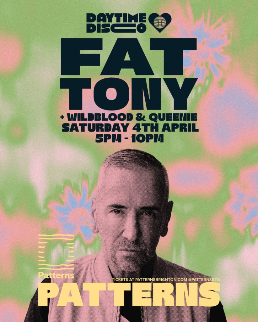 Fat Tony Daytime Disco w/ Wildblood and Queenie Saturday 4th April 2026 17:00-19:00 Patterns, 10 Marine Parade, Brighton Tickets here